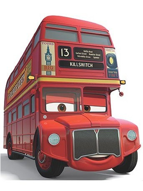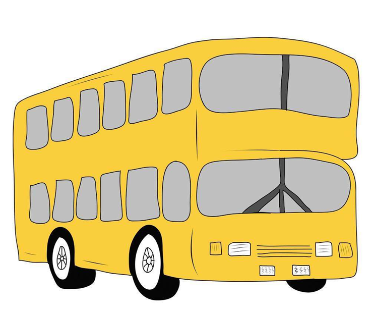 观察公交车结构:车轮、底盘、驾驶室、窗户。
